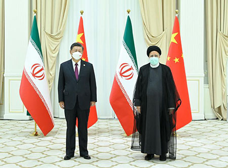 【中新社撒馬爾罕9月16日電】(記者 郭金超)當地時間9月16日上午,中國國家主席習近平在撒馬爾罕國賓館會見伊朗總統萊希。
