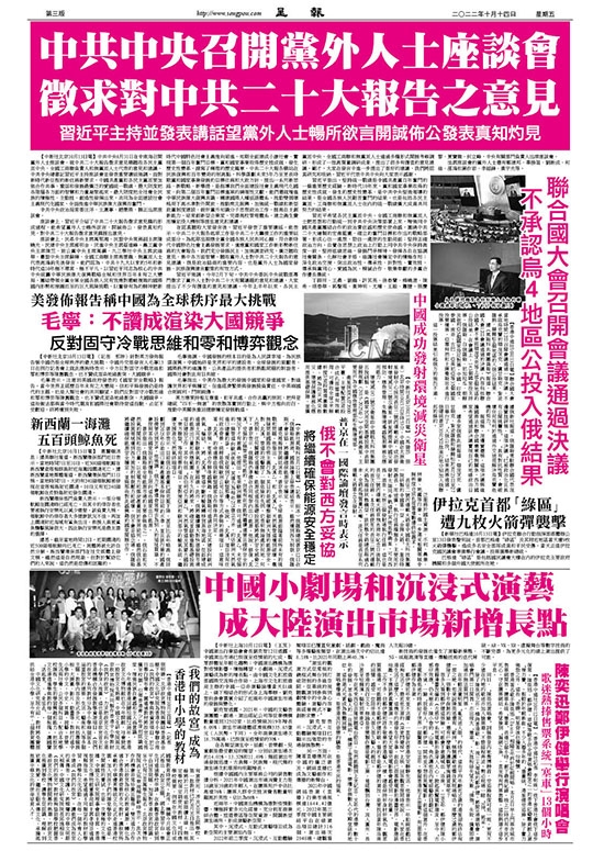 中共中央召開黨外人士座談會 徵求對中共二十大報告之意見 習近平主持並發表講話望黨外人士暢所欲言開誠佈公發表真知灼見
