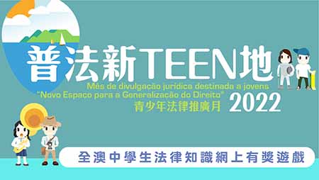 【特訊】作為“2022普法新TEEN地青少年法律推廣月活動”之一,法務局聯同警察總局、司法警察局、治安警察局、市政署、經濟及科技發展局、文化局、勞工事務局、衛生局及環境保護局,一共10個部門於10月13日至11月11日合辦“全澳中學生法律知識網上有獎遊戲”,透過寓學習於娛樂的遊戲方式,增加青少年對《憲法》、《基本法》和澳門法律法規的認識,從而提高青少年學習法律的興趣,就讀本澳的中學生均可參加。