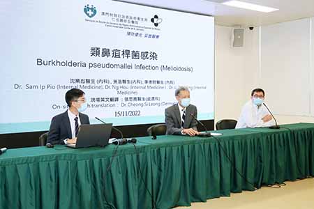 為加深前線醫護人員對類鼻疽的認識,衛生局於11月15日在衛生局會議廳舉辦“類鼻疽的預防、診斷及治療”前線醫護講解會,逾百名醫護人員出席。講解會由仁伯爵綜合醫院郭昌宇院長主持,出席人員包括衛生局前線醫護人員,以及鏡湖醫院、科大醫院、銀葵醫院、工聯康復中心及新青協康復中心的醫護代表。期間,在場醫護人員踴躍提問,並與主講醫生就臨床實務操作進行深度交流。是次講解會亦會以錄播形式向未能到場的其他醫護人員進行線上分享,並會上載至網頁供有需要醫護人員參考學習使用。(《類鼻疽病例定義和處理程序指引》和講解會影片可到連結:https://www.ssm.gov.mo/portal/csr/ch/main.aspx,在衛生局傳染病資訊網頁—>防疫監控—>防疫指引—>醫護人員或市民專欄內查閱)