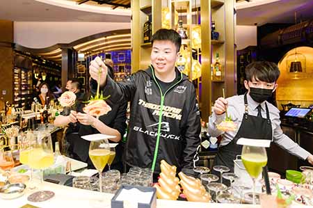 其後,兩位星級車手亦出席了在上葡京的味賞舉行的「格蘭披治賽後派對」,品嚐餐廳酒吧特別推出的各款賽車主題特調及美食。客席調酒師李橦、上葡京首席調酒師麥朗軒等即席展示如何將賽車元素融入雞尾酒,並與兩位車手現場製作獨家特調。一系列特調飲品及美食結合賽車主題,展現澳門作為聯合國教科文組織「創意城市美食之都」的多元特色餐飲之餘,全方位展現澳門格蘭披治大賽車文化,獲得車手們一致好評。