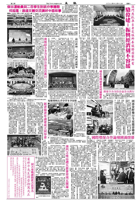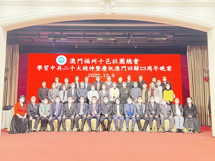 【特訊】澳門福州十邑社團總會(福邑總)日前在萬豪軒酒家舉行「學習中共二十大精神暨慶祝澳門回歸二十三周年晚宴」。全國政協委員及澳門特區政府行政會委員張宗真、澳區全國人大代表、立法議員施家倫、立法議員、澳門福建同鄉總會執行會長宋碧琪、澳門福建省澳區政協委員聯誼會會長呂聯選、澳門福建同鄉總會理事長黃天松等嘉賓出席。負責人勉勵全體成員學習、宣傳、貫徹好黨的二十大精神,堅定支持落實「愛國者治澳」的原則,為推動澳門與家鄉在各領域合作發展貢獻綿力。
