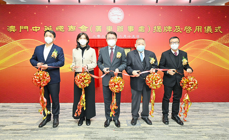 橫琴粵澳深度合作區執行委員會主任、澳門特別行政區政府經濟財政司司長李偉農與澳門中華總商會會長崔世昌為廣東辦事處進行隆重的揭牌儀式。隨後,與中央人民政府駐澳門特別行政區聯絡辦公室協調部副部長仇昱、澳門中華總商會理事長兼廣東辦事處首席代表馬志毅及珠海市公安局常務副局長高飛共同為澳門中華總商會廣東辦事處的啟用進行剪綵。