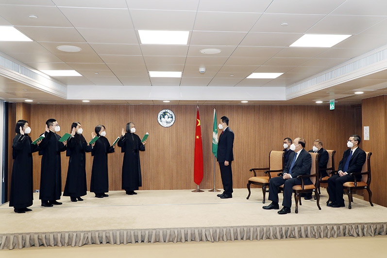 【特訊】檢察院舉行主任檢察官就職典禮,五名主任檢察官包括鍾柳仙、何雯、梁詠詩、張國治、蕭燕霞在檢察長葉迅生監誓下,宣誓就職。行政長官賀一誠、檢察官委員會委員崔世昌、王偉華、黎裕豪主禮。