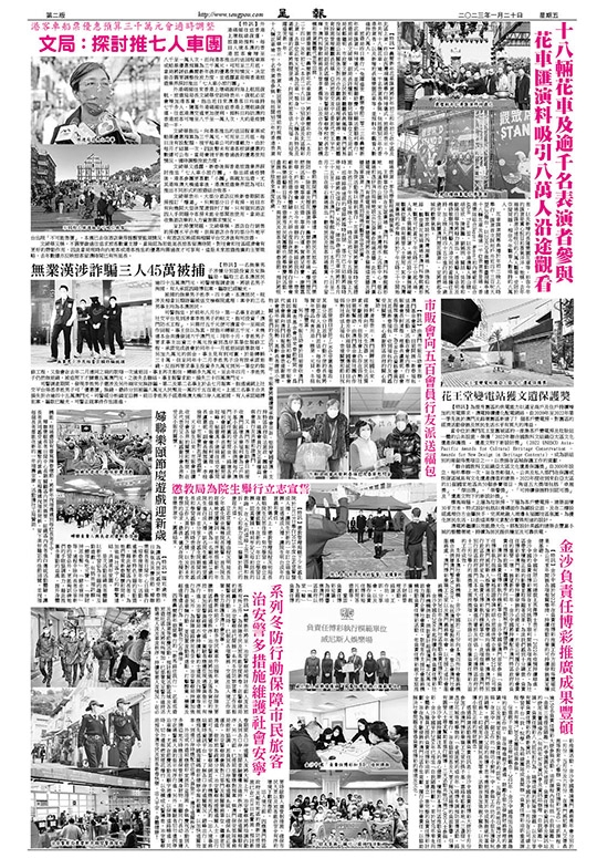因應農曆新年期間舉行的「新馬路任我行」、花車巡遊及煙花匯演等節慶活動,預計相關活動區域及各大旅遊旺區人流將有所增加,已部署充足警力維持活動場地人流及車流秩序,持續留意人流情況,在必要時啟動人潮管制措施,確保市民大眾以及旅客能在安全有序的環境下歡度春節。
