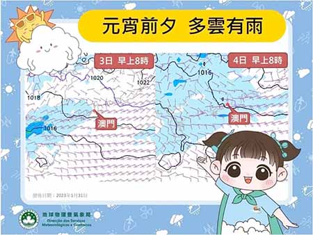 元宵佳節將至,氣象局提醒市民加倍留意天氣變化,出行適時增添衣物及雨具,關注自身及家人健康。