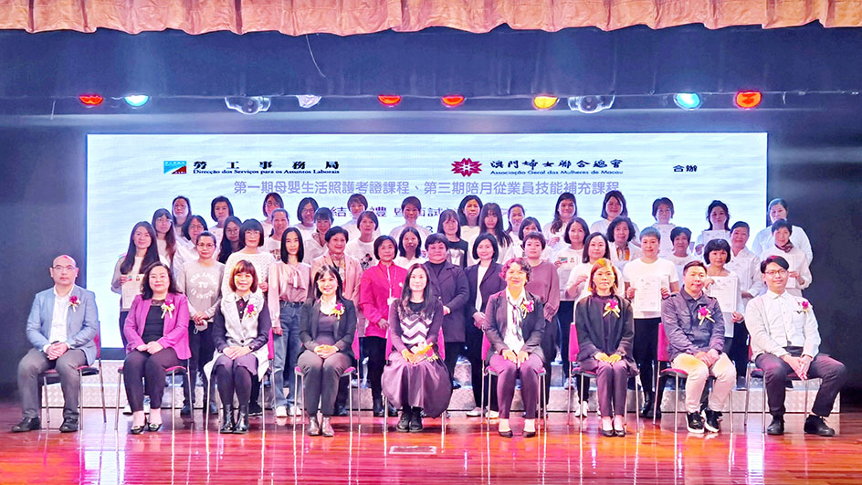 【特訊】由勞工事務局和婦聯總會合辦的“就業導向帶津培訓計劃──第一期母嬰生活照護考證課程”和“第三期陪月從業員技能補充課程”,日前在婦聯綜合服務大樓五樓何賢禮堂舉行結業禮,兩課程合共五十七位學員取得證書。