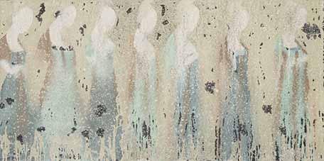 對於袁小樓而言,兒時對古老壁畫的癡迷與觀賞,對他的藝術產生了深刻的影響。多年後,他從事岩畫的田野調查,從那些模糊不清,但依舊鮮活的亙古石刻圖騰中看到遠古的人類面對生死的不確定性而把永恆的幻象銘記下來,尤其是敦煌佛像,一直都縈繞於記憶。他從敦煌壁畫中獲得重大啟示,開啟了他要重新架構當代東方美學繪畫體系,他自覺承擔了本來自東方美學或者說是人類文化文明的召喚與使命。在他的作品中,觀音與媽祖所體現的神聖生命救贖的慈愛,女性化的美人圖像志所體現的文化詩意,胎兒母體的生育呵護所體現的生命保護形象,表現現代人性生命本能欲望的時尚女性形象都得到了當代的完整表達。
