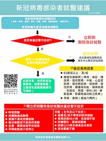 衛生局強調,不具重症風險因素或沒有重症警示症狀的青壯年及兒童,感染新冠病毒後使用對症治療藥物即可;若需要就醫應儘量使用非急診服務,避免佔用緊急的醫療服務資源;此外,亦建議有關機構或學校不用員工及學生提供醫生證明,根據其抗原檢測呈陽性的結果,酌情處理給予休息,儘量減少不必要的醫療擠兌,而感染者在症狀緩解後即可復工或復學。若有關機構或學校認為感染者仍需上班或上學,則應嚴格遵守預防呼吸道傳染病指引佩戴口罩。