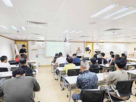 在工作坊上,導師向學員簡介澳門中水回用的推動情況,中水的用途及水質標準;並從理論角度介紹澳門現行的供水規範,講解樓宇雙管道供水系統的概念,以及教導學員識別喉管物料、使用三型聚丙烯管(PPR)管材所需的接駁技術、安裝的注意事項等;同時,輔以樓宇建築圖則實例,讓學員認識如何讀圖、辨析樓宇的供水系統。學員亦在導師的指導下,就PPR管材施工進行實務操作練習。