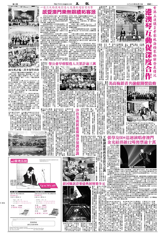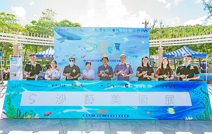 【特訊】由澳門文創藝術志願者協會、澳門環保志願者協會合辦的「S沙藝美術展」已於7月9日假黑沙海灘休憩區舉行,是次活動由中聯辦社工部羅振宇處長、環境保護局環境宣傳教育合作廳廳長阮燕蓮、市政署文康社群處處長歐振榮、海事及水務局職務主管梁守恆、立法會議員兼澳門工會聯合總會副理事長李靜儀、珠海市志願者聯合會秘書長龔柳梅、澳門志願者總會理事長歐鈺娜、文創藝術志願者協會會長黃潮裕、環保志願者協會理事長張浩然為活動主持開幕儀式。