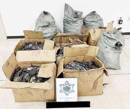 上月三十一日中午,海關透過「風險管理系統」的預警佈控,於橫琴口岸出境車道截查一部私家車,三十九歲本澳女司機報稱沒有需申報物品。關員其後在車內地氈底部及車尾多個紙箱內,起出三百二十公斤已燒焦的舊電池。該女子在不具備有效的申報文件下將上述物品偷運往內地。