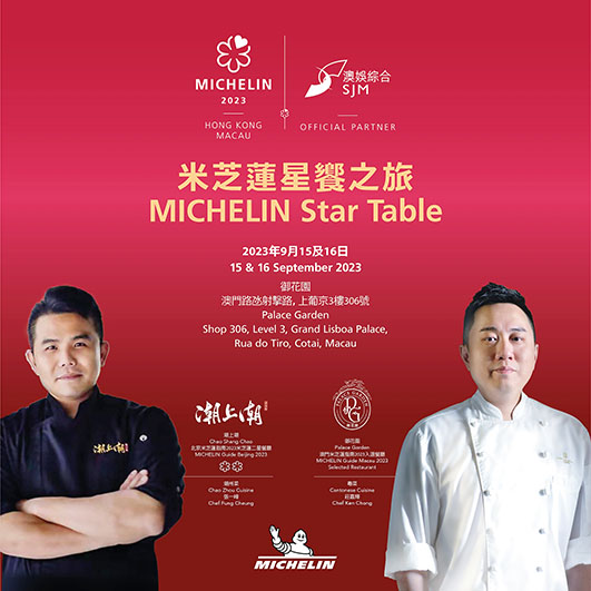 【特訊】澳娛綜合度假股份有限公司(「澳娛綜合」)作為《香港澳門米芝蓮指南》的官方合作夥伴,欣然為澳門呈獻首場「米芝蓮星饗 之旅」,為饕客打造非凡極致的美食享受。其中,首場盛宴將於 9月15和16日在澳門上葡京綜合度假村(「上葡京」)「御花園」餐廳揭開序幕,呈獻四手聯乘的六道精緻中式美饌。