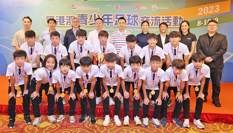 【特訊】由澳門特別行政區政府體育局主辦,廣東省體育局、香港特別行政區政府康樂及文化事務署和澳門足球總會協辦的「2023粵港澳青少年足球交流活動」,於9月9日及10日在奧林匹克體育中心-戶外天地小型足球場舉行。「2023粵港澳青少年足球交流活動」昨(10日)順利完成第二日的賽事,經過一連兩日激烈的比賽,「2023粵港澳青少年足球交流活動」的A組及B組冠亞季軍分別為:香港隊、廣東隊、澳門隊,並於賽後舉行頒獎儀式。