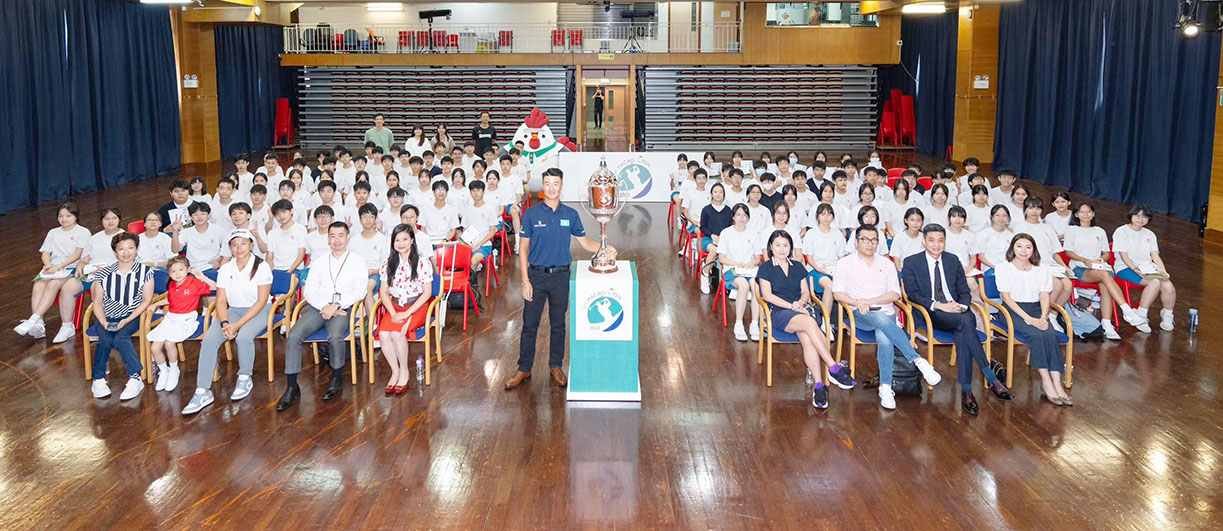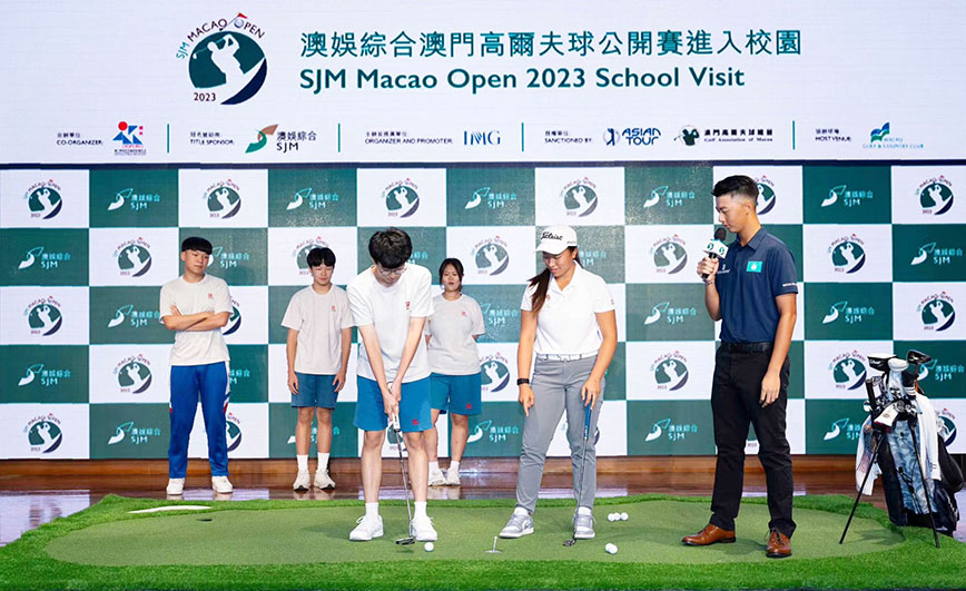 [特訊] 為令更多青少年關注高爾夫球運動,推動澳門高爾夫球的發展,澳娛綜合澳門高爾夫球公開賽開展了進入校園活動。9月23日,本屆澳娛綜合澳門高爾夫球公開賽的參賽球手、澳門本地優秀業餘選手禤沛言,聯同澳娛綜合旅遊大使「森仔」,來到培正中學舉辦高爾夫球交流會,為母校100多位師弟師妹進行高爾夫球運動的普及並分享自己對這項運動的感悟,以求激勵更多青少年了解並參與高球運動。澳娛綜合澳門高爾夫球公開賽的冠軍獎盃亦在現場亮相。