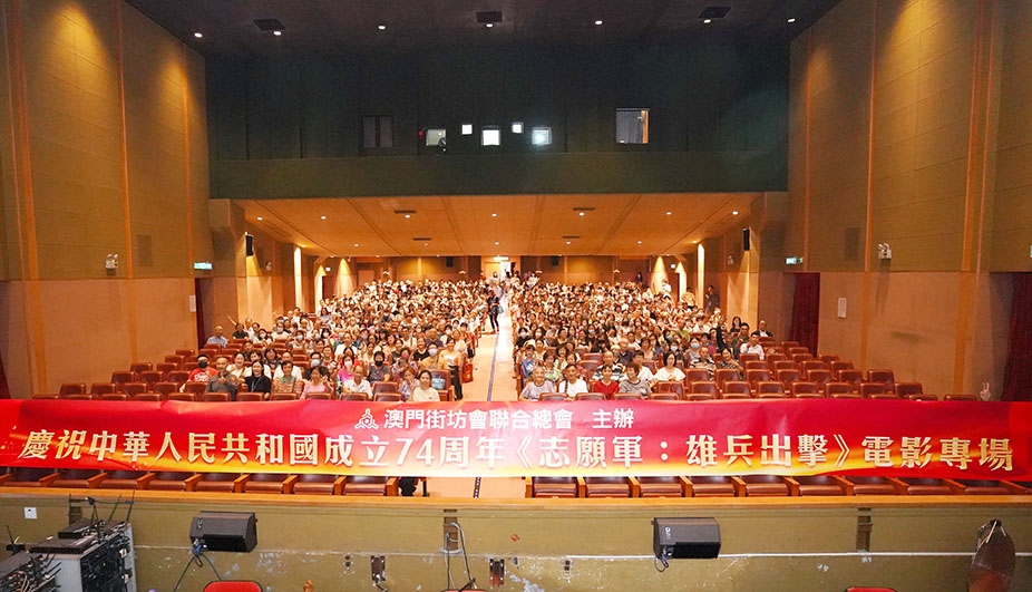 【特訊】為慶祝中華人民共和國成立74周年,街坊總會日前假永樂戲院舉辦《志願軍:雄兵出擊》電影專場,邀請理監事成員、職工、以及街坊等約600人到場觀影,希望透過電影與居民一同回到建國初期,回首這場波瀾壯闊的立國之戰——抗美援朝戰爭,藉此深入了解國家歷史,並向建國英雄致敬。