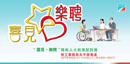 【特訊】為推動僱主給予殘疾人士就業機會,鼓勵殘疾人士投入就業市場。勞工事務局將於本年12月5日在勞工局太平辦事處續辦“喜見・樂聘”殘疾人士就業配對會,歡迎企業10月10日起踴躍報名參與,支持殘疾人士就業。