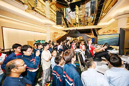 澳娛綜合德利PREMA賽車隊的出戰車手艾隆先生(Mr. Paul Aron)、貝加奴域先生(Mr. Dino Beganovic)、米尼先生(Mr. Gabriele Minì)和梁瀚昭先生透過結合虛擬實境的「極速賽車」運動遊戲,向學生示範模擬賽車的練習過程。其後,學生紛紛試玩賽車競速遊戲,感受尤如馳騁於迂迴曲折賽道上的動感樂趣。除了以充滿趣味的方式感受澳門特有的大賽車文化外,參加者亦與車隊行政總裁小葉德利(Teddy Yip Jr.)和車手進行互動交流和合影,並獲車手送贈簽名海報留念。