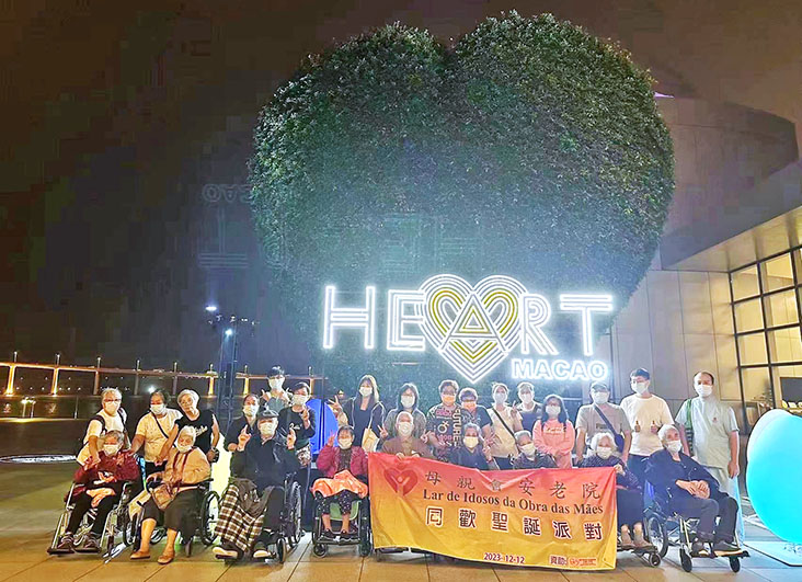 活動首日,適逢澳門政府主辦的2023幻彩耀濠江燈飾設置藝術的舉行,院舍組織院友及其家屬開展夜遊澳門科學館及觀音像海濱休憩區活動,欣賞沿途聖誕燈飾,影像投射建築立面上的光雕表演,在夜幕降臨時,繽紛多彩的燈飾驟然亮起,炫目迷人的光影投射照亮全場,多個浪漫繽紛的燈光裝置令人眼花繚亂、教人目不暇給,亦為院友疫後首次與家人夜遊聖誕帶來嶄新的節日體驗,感受不一樣而震撼的聖誕佳節。