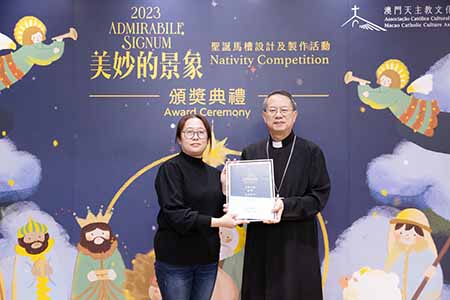 【特訊】多年來在澳門舉辦的聖誕馬槽設計及製作活動,一直受到各學校的積極參與,並且廣受熱烈迴響。澳門天主教文化協會繼續主辦這項活動,推廣這美好的聖誕傳統。2023《美妙的景象》聖誕馬槽設計及製作活動校園組頒獎禮於1月6日上午11時假美麗街5號地下舉行,應邀出席的頒獎嘉賓包括有天主教澳門教區首牧暨澳門天主教文化協會主席李斌生主教、國際級廣告界代表人物莫康孫及澳門天主教文化協會理事長蔡文威。
