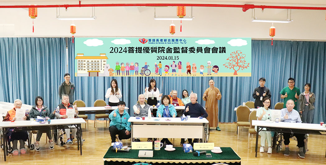 特訊】菩提長者綜合服務中心於2024年1月15日假菩提社會服務大樓一樓多功能室舉辦「2024菩提優質院舍監督委員會會議」,是次會議邀請到菩提社會服務大樓管理委員會主席釋心慧法師、菩提長者綜合服務中心總監洪靄明、副主管鄭文雄、嚴淑瑜、樓層主管、各專職組長及菩提優質院舍監督委員出席是次會議。