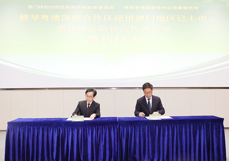 澳門藥監局蔡炳祥局長表示,簽署的《備忘錄》圍繞深合區使用澳門地區已上市部分藥品的各項安全監管工作,透過對有關藥品進行全生命周期管理,保障深合區澳門居民的用藥安全,為推動澳門居民在深合區居住和工作創設良好條件。隨著《橫琴粵澳深度合作區總體發展規劃》及《關於支持橫琴粵澳深度合作區放寬市場准入特別措施的意見》的出台,為推動澳門和深合區機制協同、規則銜接提供了更明確的規劃和方向。在上述政策框架下,澳門藥監局和深合區商事局將進一步探討和研究兩地藥品監管創新模式及機制,包括深入實施“澳門註冊+橫琴生產”,推動發展中醫藥等澳門品牌工業,助力大健康產業發展。