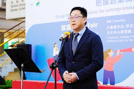 陳俊拔向各位到場嘉賓、協辦單位及參展商表示感謝,他表示嘉年華旨在促進本校在校生、應屆畢業生、畢業校友與社會、企業各界多方面交流,協助企業延攬優秀人才,同時讓學生瞭解目前粵港澳大灣區的市場動態,及早做好事業規劃。他介紹,城大「社會科學總論」進入ESI全球前1%,彰顯大學在人文社科學科領域的特色和優勢。同時,城大率先開展課程國際權威認證,旅遊業管理專業的博士、碩士、學士學位課程,均為獲聯合國世界旅遊組織TedQual優質教育素質認證的特色課程,其中旅遊休閒管理學科位居軟科「2023世界一流學科排名」入庫排名高校全球前20%位列排名51-75。城大將致力構建「政、校、企」的產教研融合平台,持續為學生爭取更多實習實踐、就業創業機會。他寄語學生,現今社會發展迅速多變、就業形勢競爭激烈,年青人必須秉持務實進取,靈活變通,勇於嘗試,敢於突破的精神來應對各項問題,發揮自我價值。