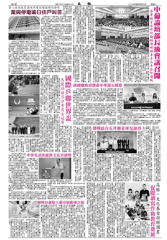 【特訊】由澳門基金會與澳門日報合辦的第二十九屆“澳門中學生讀後感徵文比賽”反應熱烈,本屆以“一本好書獻回歸”為主題,共收到27間學校508份參賽作品。頒獎禮已於2024年4月20日在澳門教科文中心舉行,主辦單位向二十位獲獎學生頒發獎座,以示鼓勵。澳門基金會行政委員會主席吳志良,澳門日報社長陸波,高中組評判廖子馨、陸奧雷、太皮,初中組評判關曉泉、安好,以及各校校長、老師、獲奬同學及其家長出席典禮,場面熱鬧。