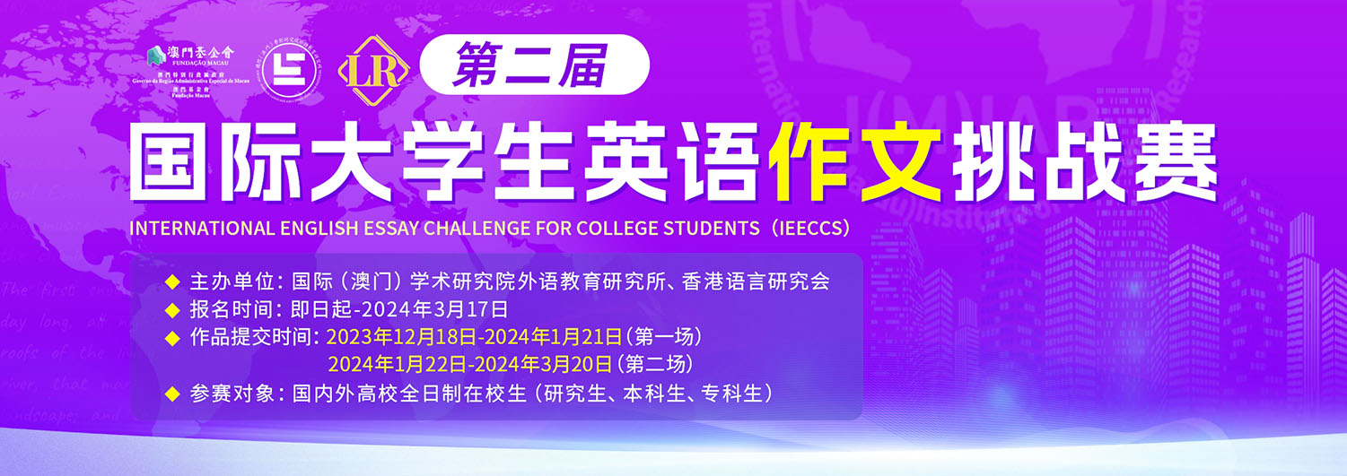 【特訊】由國際(澳門)學術研究院外語教育研究所主辦,澳門基金會資助的“2023第二屆國際大學生英語作文挑戰賽(IEECCS)”(2023 International English Essay Challenge for College Students,簡稱IEECCS)圓滿落幕,澳門分賽區顧問高月生期望,透過舉辦英語作文賽,助力培育英語寫作人才。