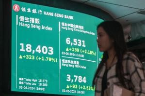 【新華社香港6月3日電】香港恒生指數3日漲323.43點,漲幅1.79%,收報18403.04點。全日主機板成交1323.1億港元。