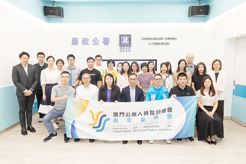 【特訊】為推動青年公務人員了解本澳的廉政教育工作,澳門公務人員聯合總會青年委員會(公總青委會)日前在立法會議員李振宇、李靜儀陪同下前往廉政公署氹仔社區辦事處參觀,了解廉署在打擊、預防及教育各方面的廉政建設工作,獲廉政專員陳子勁和辦公室主任陳彥照接待。