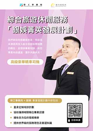 本計劃提供高級豪華轎車司機職缺20個。獲錄取參加計劃後,銀河娛樂將為僱員安排一系列專業培訓及工作實踐。培訓內容包括五星級款客服務培訓、豪華轎車駕駛技巧培訓、交通安全培訓、劍橋領思實用英語(口語)及考取酒店及飲食業職安卡等證照。完成24個月培訓及通過考核後,表現良好者將獲晉升及調整薪酬的機會,藉此協助有意投身綜合旅遊休閒服務業的澳門居民發展職涯和推動向上流動,快速拓展職業生涯。
