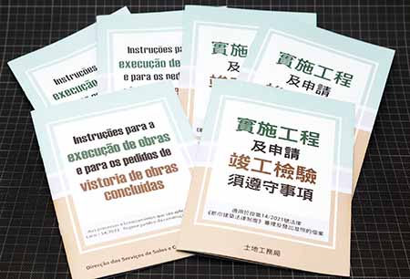 由於法例實施後,在具體操作上與過去有所不同,為使建築業界清晰常見的注意事項,減少工程實施過程以至竣工驗收階段出現倘有的錯漏,使施工過程更為流暢。為此,土地工務局推出了《建築擴建工程實施期間及竣工檢驗申請須遵守事項》以及《非建築擴建工程實施期間及竣工簡單檢驗申請須遵守事項》兩份指引,分別列出工程在動工前的準備、工程期間以及申請竣工檢驗須遵守和注意的事項。考慮到令業界和相關人士更易理解,土地工務局就相關內容製作了小冊子及圖文包,冀透過圖文並茂的方式,讓業界更易掌握和執行。市民可到局方網頁(https://www.dsscu.gov.mo)瀏覽或下載兩份指引、小冊子及圖文包,亦可到土地工務局索取小冊子的印刷版。