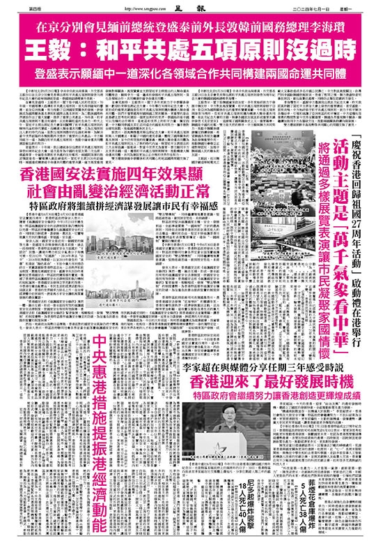 香港國安法實施四年效果顯 社會由亂變治經濟活動正常 特區政府將繼續拼經濟謀發展讓市民有幸福感
