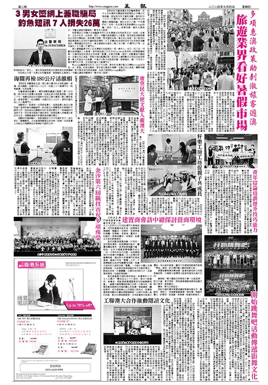 崔世昌歡迎建置商會一行來訪,並祝賀該會新一屆領導層的誕生,繼續為團結業界、經濟發展貢獻力量。他說,去年中總藉著舉辦慶祝成立一百一十周年的系列活動,包括邀請海內外商會代表團逾二百人蒞澳出席會慶晚宴,藉此對外宣傳澳門的營商環境。適逢今年是「雙慶」之年,中總積極配合政府有關慶祝活動,與廣大居民和工商界共賀「雙慶」。中總十分關心本澳經濟發展,也留意到經濟復甦存有不均衡的情況,期望在政府、社會團體、企業的共同努力下,改善營商環境,促進經濟發展。