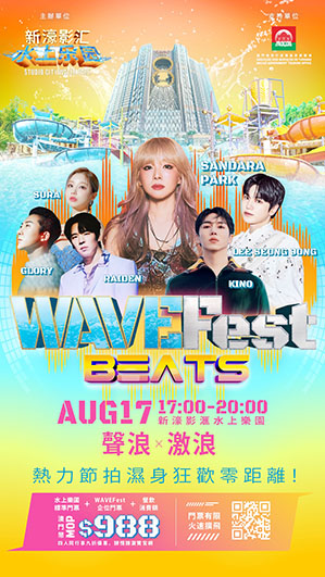【特訊】新濠影滙上周剛公佈了WAVEFest EPIC將於8月18日火熱舉行;今日驚喜公佈將加碼於8月17日舉行WAVEFest BEATS。WAVEFest由澳門特別行政區政府旅遊局作為支持單位,是全澳首個聲浪加激浪戶外水上音樂節,將8月載譽重臨,分別於8月17日舉行WAVEFest BEATS;與及8月18日舉行WAVEFest EPIC。WAVEFest特設開放式多面舞台,演出嘉賓與樂迷近乎零距離。為玩轉盛夏,今次更加設水花效果,台上台下一起載歌載舞、激爽濕身狂歡!