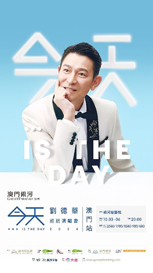 【特訊】由「澳門銀河™」呈獻,今天…is the Day 劉德 華巡迴演唱會 2024 - 澳門站正式定檔於 10 月 3 日至 6 日在澳門最大的文化娛樂新地標 銀河綜藝館連開四場,門票將於 8 月 22 日中午 12 時在大麥 APP,銀河票務公開發售。 演唱會從今年 7 月由上海站啟程,至今已經走過上海、廣州、北京、南京、成都五座城 市。而今年更是劉德華睽違 15 年後再次來到澳門舉行個人演唱會,更進一步突顯出澳 門「演藝之都」的地位。