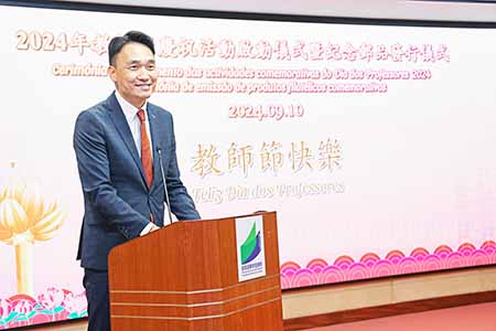 龔志明局長表示,感謝全澳教學人員及教育工作者的付出,一直為特區政府培養優秀人才。回歸二十五年來,在國家的支持下,教育界和各持分者共同努力,澳門教育事業不斷發展,教育質素不斷提升。PISA 2022研究結果中指出,在過去二十年,澳門學生在數學、科學和閱讀素養表現都保持穩定向上的趨勢,澳門教育系統是實現卓越和公平的典範。新生效的《非高等教育教學人員的專業發展制度》提供更有系統和理論與實務相結合的專業發展活動,提升教學人員的專業發展成長。此外,特區政府持續完善高等教育體制,強化和提升院校自身的管治水平,亦建立了高等教育素質保證制度,持續與澳門高校攜手優化辦學質量,近年澳門高校在多個世界大學排行榜、學科排行榜的排名持續上升。配合澳門“一中心、一平台、一基地"發展定位,教青局將進一步推動教育高質量發展,並從多方面深化愛國愛澳教育的工作,培育助力澳門經濟適度多元發展和融入國家發展大局所需的人才。