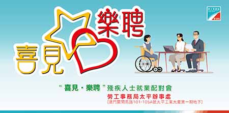 【特訊】為推動僱主給予殘疾人士就業機會、鼓勵殘疾人士投入職場,勞工局將於本年12月5日在太平辦事處舉辦“喜見・樂聘”殘疾人士就業配對會。有意為殘疾人士提供就業機會的企業,可於9月30日起網上遞交有關招聘崗位。