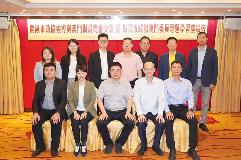 【特訊】為慶祝中華人民共和國成立75週年,澳門特別行政區回歸25週年,日前,揭陽市政協副主席林春霖,揭陽市政協常委、港澳臺僑委員會主任洪少偉,揭陽市政協聯絡委工作科科長王錚一行到訪澳門進行考察交流。假聯邦酒樓舉辦“揭陽市政協領導與澳門揭陽商會交流暨揭陽市政協澳門委員專題學習座談會”。廣東省政協委員、揭陽市政協澳門聯絡組組長、澳門揭陽商會會長許樂敏,揭陽市政協常委曾增偉,揭陽市政協委員黃芳淳、余利城,黃翠賢出席。