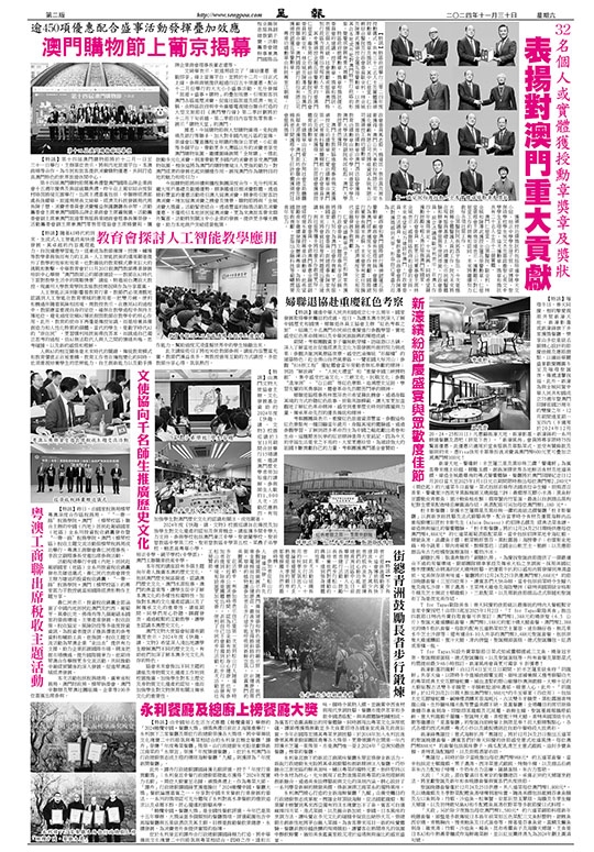 32名個人或實體獲授勲章獎章及獎狀 表掦對澳門重大貢獻