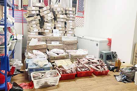 海關表示,昨日(五日)下午巡查發現涉事散貨點,相信這個散貨點自前日(三日)起運作,行動中,海關檢獲約 五百六十五公斤急凍牛肉、內臟和雞腳,約值四萬元,一名三十歲本地女負責人被帶走調查。海關經調查後,相信有人利用水客以螞蟻搬家方式偷運貨物出境,經調查每包急凍產品帶工費 一百一十元人民幣,現場負責人日薪四百元。