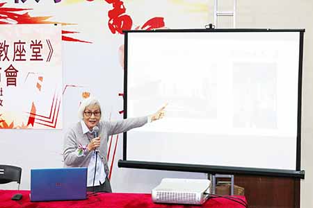 馮瑞芬修女分享,聖母誕辰主教座堂四周有九個與大堂有關的街道或地方,並細緻講解了聖堂內的宗教藝術珍品,包括聖所上十二宗徒的玻璃窗和基督君王小堂玻璃畫的故事,以及唱經樓、聖勞諾小堂、高德華禮堂、祭衣房等地的作用。