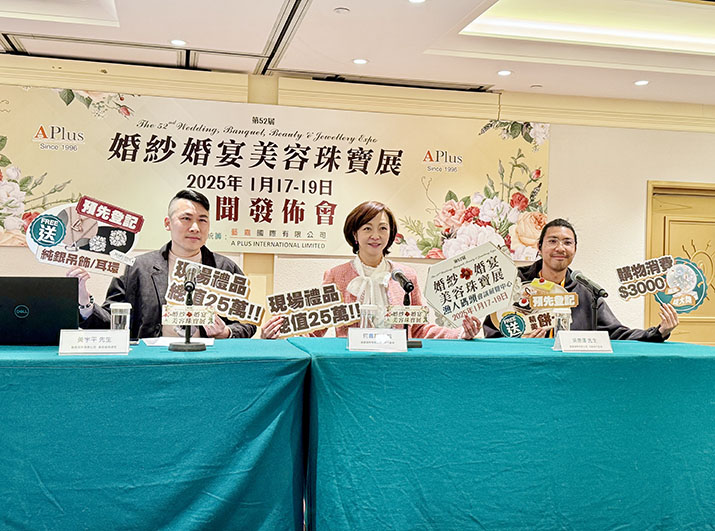 由藝嘉國際有限公司主辦之「第五十二屆婚紗婚宴美容珠寶展」於今日起一連三日舉行,昨午舉行新聞發佈會介紹展覽詳情。
