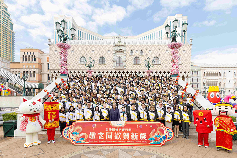 自2008年起,金沙中國已連續16年與「平安通」合作舉辦活動,與長者喜迎新歲活動,歷年來合共探訪了接近1,000位使用「平安通」的長者用戶。金沙中國團隊成員周二探訪近150名澳門街坊會聯合總會「平安通」呼援服務的長者用戶,於新春前夕向他們送上暖意關懷及祝福。義工們於活動當日攜同清潔用具登門拜訪,協助長者清潔家居,喜迎蛇年。