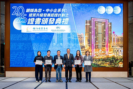 【特訊】銀河娛樂集團(下稱「銀娛」)作為澳門首間推行「以大帶小」商業合作模式的綜合旅遊休閒企業,一直視本地中小企為重要合作夥伴,致力以多元舉措協助其升級轉型,實現可持續發展。去年,銀娛推出「銀娛為您‧中小企系列:提質升級發展認證計劃」,資助合資格的本地供應商合作夥伴,修讀由澳門生產力暨科技轉移中心(下稱「生產力中心」)提供的國際及本地品質管理培訓課程,以分別考取國際專業認證及「M嘜」澳門產品優質認證(下稱「『M嘜』」),以務實行動支持打造更多「澳門製造」品牌,推動本地製造業發揮優勢。為嘉許成功透過計劃獲得相關專業認證的近40間供應商合作夥伴,銀娛日前於銀河國際會議中心舉辦證書頒發典禮,並設有攤位展示及分享心得環節,藉此促進旗下供應商合作夥伴交流經驗,進一步開拓商機,吸引約150人參與。