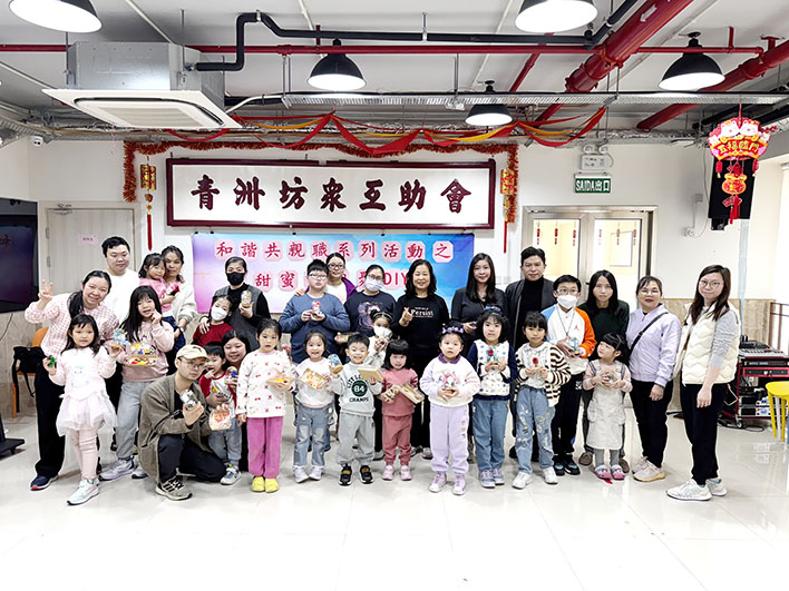 【特訊】為促進親子間良好互動與溝通,共同營造和諧共親職的核心理念,青洲坊眾互助會日前舉辦「和諧共親職系列活動之甜蜜童相聚DIY」親子工作坊。吸引了40個親子家庭成員參與,親子家庭在愉快的氛圍中共同享受創作的樂趣。
