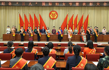 大會表彰了10名全國三八紅旗手標兵、596名全國三八紅旗手、395個全國三八紅旗集體、599個全國巾幗文明崗。