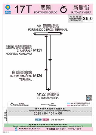 4月4日中午12時至4月6日至晚上8時,羅保博士街往殷皇子大馬路方向路口臨時封閉,用作設置排隊設施供前往關閘方向的乘客候車;期間每日中午12時至晚上8時,3及3X路線臨時不停靠“新馬路/華僑”站,改為停靠設於殷皇子大馬路近羅保博士街的臨時站再按原線行駛;