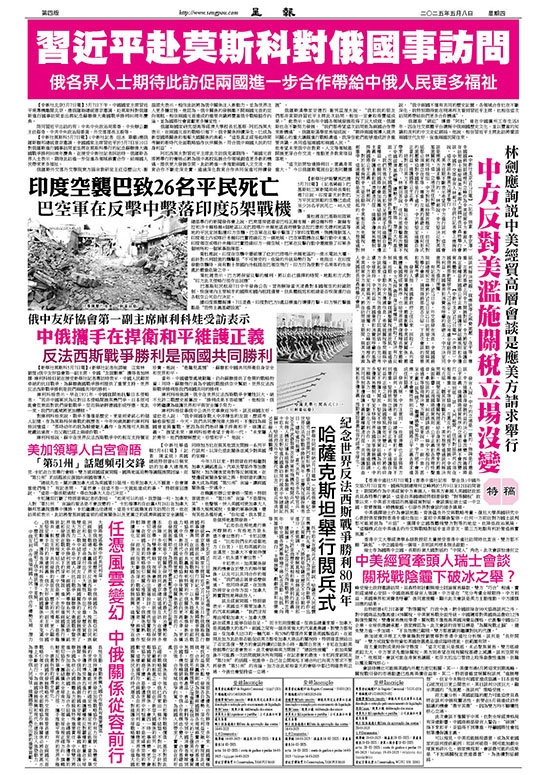 【新華社北京5月7日電】(新華社記者楊德洪)應俄羅斯聯邦總統普京邀請,國家主席習近平5月7日至10日對俄羅斯進行國事訪問並出席在莫斯科舉行的紀念蘇聯偉大衛國戰爭勝利80周年慶典。在兩國元首戰略引領下,以永久睦鄰友好、全面戰略協作、互利合作共贏為鮮明特質的中俄關係不斷煥發新的活力,中俄新時代全面戰略協作夥伴關係正在向更高水準、更廣維度邁進。任憑國際風雲變幻,中俄關係都將從容前行,為各自發展振興助力,為國際社會貢獻更多穩定性和正能量。